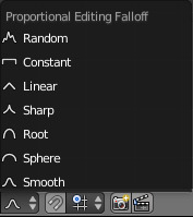 highlighted iconO, Alt-O, Shift-OWhen working with dense geometry, it can become difficult to make subtle adjustments to the vertices without causing visible lumps and creases in the model’s surface. When you face situations like this the proportional editing tool can be used to smoothly deform the surface of the model. This is done by the tool’s automatic modification of unselected vertices within a given range.