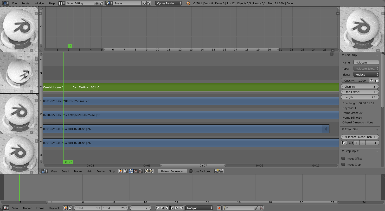 The Multicam Selector strip is used for multi camera editing. Multi camera editing is when a scene is recorded using multiple cameras from different angles and then edited together after words. This process can be rather easy in the VSE if you properly setup every to improve your workflow.