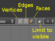 There are many ways to select elements, and it depends on what Mesh Select Mode you are in as to what selection tools are available. First we will go through these modes and after that a look is taken at basic selection tools.