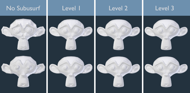 The Subdivision Surface Modifier is used to split the faces of a mesh into smaller faces giving a smooth appearance. Using this modifier, enables you to model complex smooth surfaces with simple, low-vertex meshes. This allows high resolution mesh modeling without the need to save and maintain huge amounts of data and gives a smooth organic look to the object.