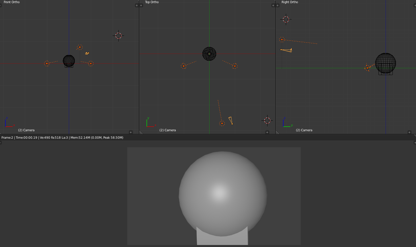 The standard three-point lighting rig is the most common illumination of objects and scenes bar none. If you want to show off your model, use this rig. As you can see, the untextured unmaterialized sphere seems to come out at you. There are multiple thesis on this rig, and you will use one of two: